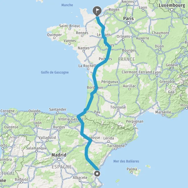 Continuer E5 (L'Aquitaine) sur 328 kilomètres
