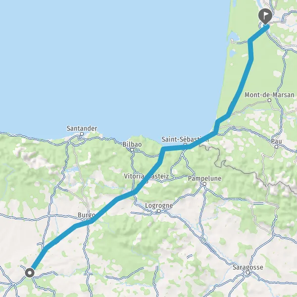 Prendre à droite et rejoindre AP-1 AP-1 AP-8 E-80 E-70 E-70 E-5 E-5. Continuer sur 20 kilomètres