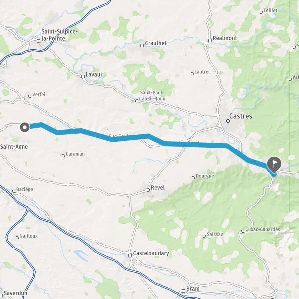 Tourner à droite sur D826 (Route de Castres) et continuer sur 14 kilomètres