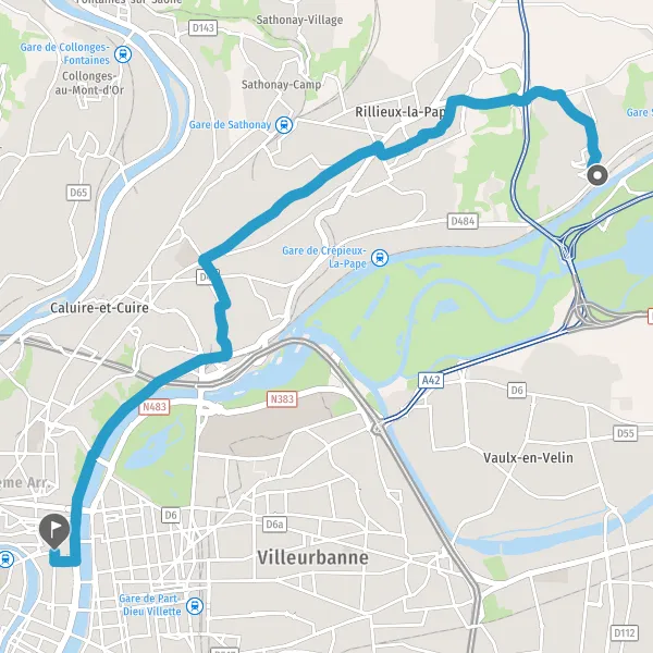 Prendre à gauche la voie partagée Route de Rillieux et continuer sur 450 mètres