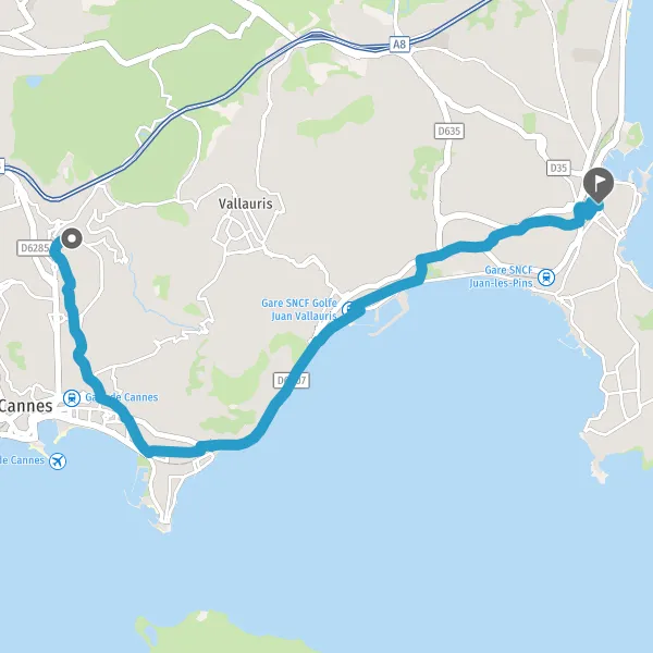 Au rond-point, prendre la 3ème sortie Rue de Cannes et continuer sur 350 mètres