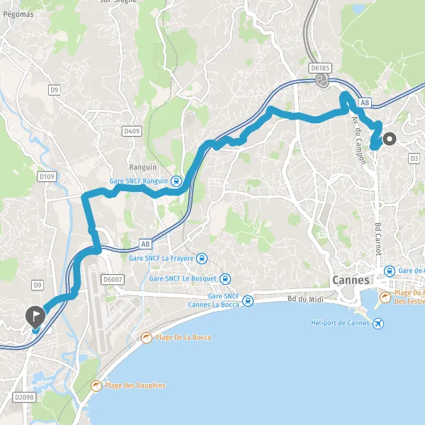 Au rond-point, prendre la 3ème sortie Avenue de Cannes et continuer sur 450 mètres
