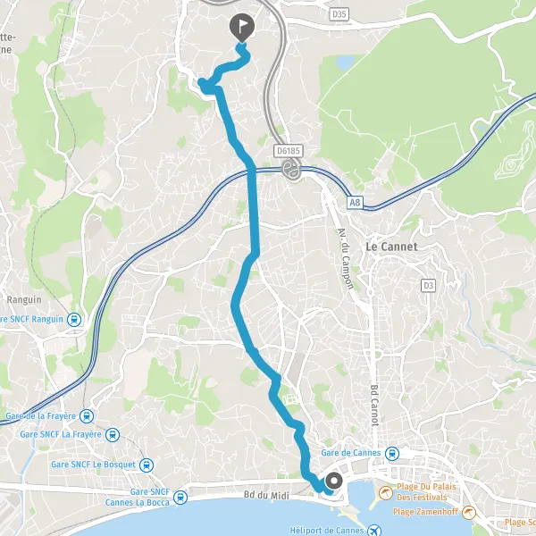 | Distance à vélo | 6,6 km à 7,4 km |