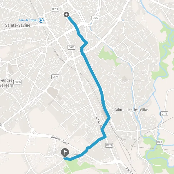 | Distance à vélo | 5,1 km à 5,3 km |
