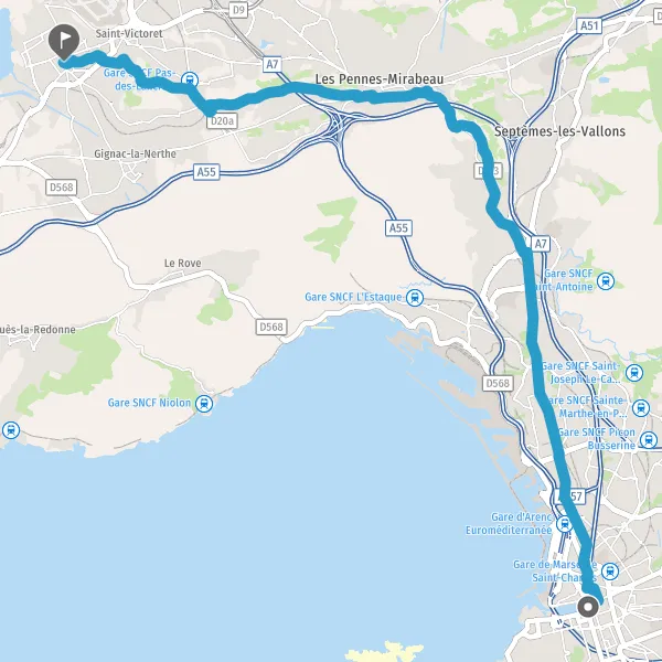 Prendre légèrement à droite Route Départementale 368 de Martigues à Marseille et continuer sur 1,0 kilomètre