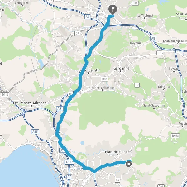 Prendre légèrement à droite Chemin de Mimet et continuer sur 550 mètres