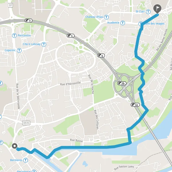 Prendre légèrement à droite la piste cyclable la voie et continuer sur 270 mètres