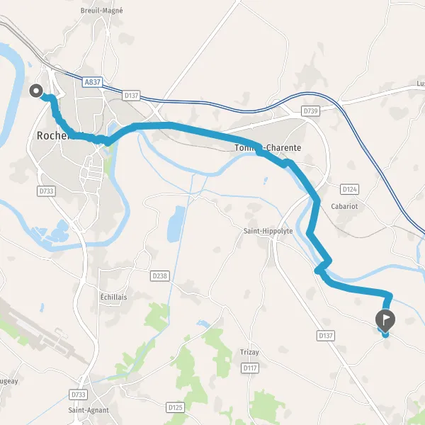 Au rond-point, prendre la 1ère sortie la piste cyclable Avenue d'Aunis et continuer sur 230 mètres