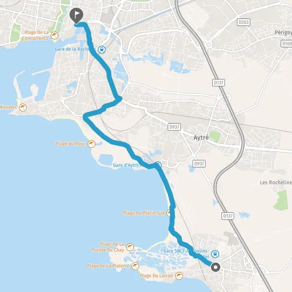 Prendre à gauche la piste cyclable Route de la Plage et continuer sur 550 mètres