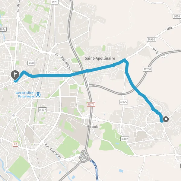 | Distance à vélo | 6,2 km à 7,3 km |