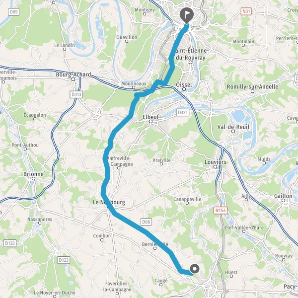Prendre légèrement à gauche la piste cyclable Rue d'Elbeuf et continuer sur 1,1 kilomètre