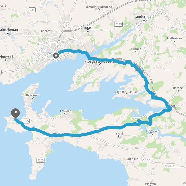 Au rond-point, prendre la 2ème sortie Route de Crozon et continuer sur 2,1 kilomètres