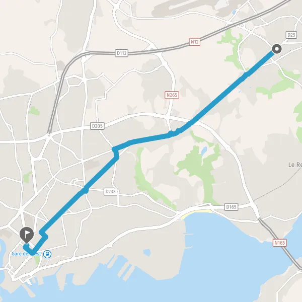 Au rond-point, prendre la 3ème sortie la piste cyclable Rond-Point de Pen ar Reun et continuer sur 160 mètres