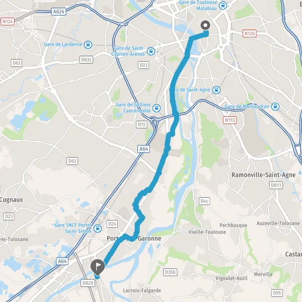 Prendre légèrement à droite Allée des Moulins de la Garonne et continuer sur 650 mètres