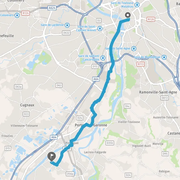 Prendre légèrement à droite Allée des Moulins de la Garonne et continuer sur 650 mètres