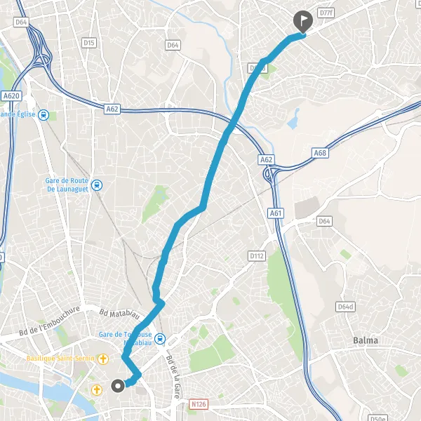 | Distance à vélo | 7,5 km à 7,7 km |