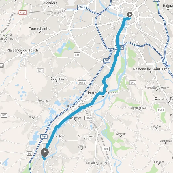 Prendre à gauche la piste cyclable Route d'Espagne et continuer sur 600 mètres