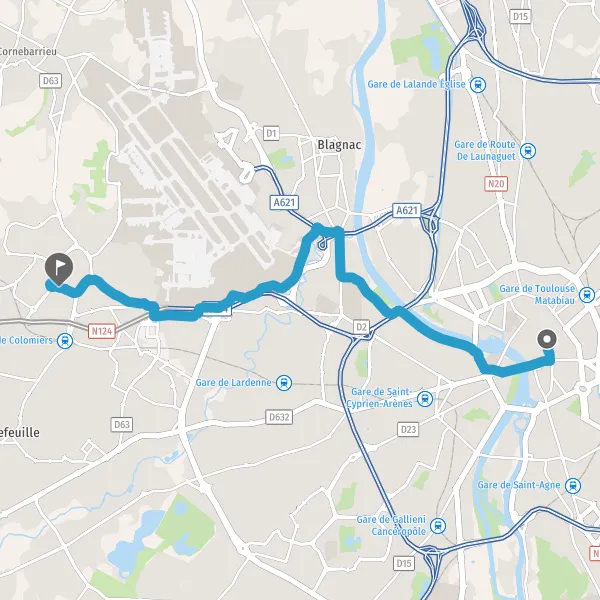 Prendre à droite la piste cyclable Place Étienne Esquirol et continuer sur 400 mètres