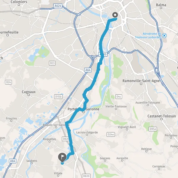Prendre légèrement à droite Allée des Moulins de la Garonne et continuer sur 650 mètres