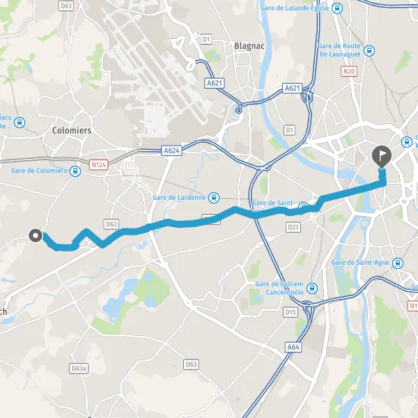 Au rond-point, prendre la 2ème sortie Avenue de Lardenne et continuer sur 2,6 kilomètres