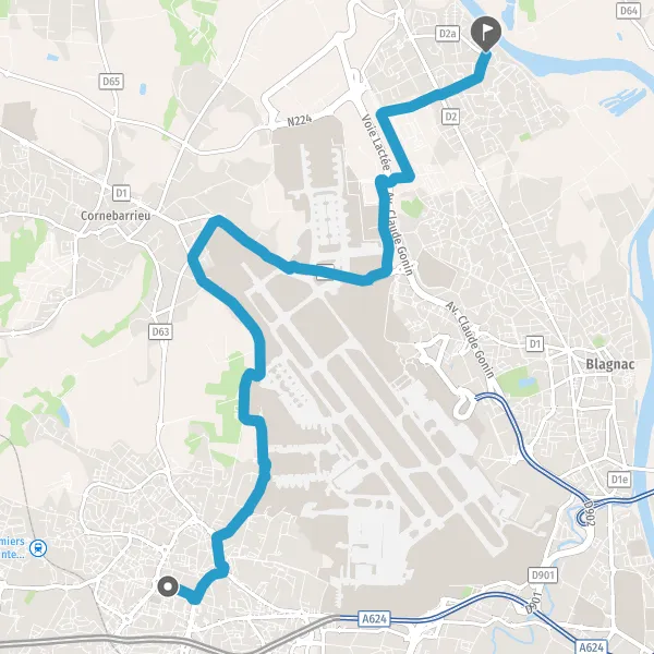 Prendre à gauche la piste cyclable Boulevard Maurice Grynfogel et continuer sur 270 mètres