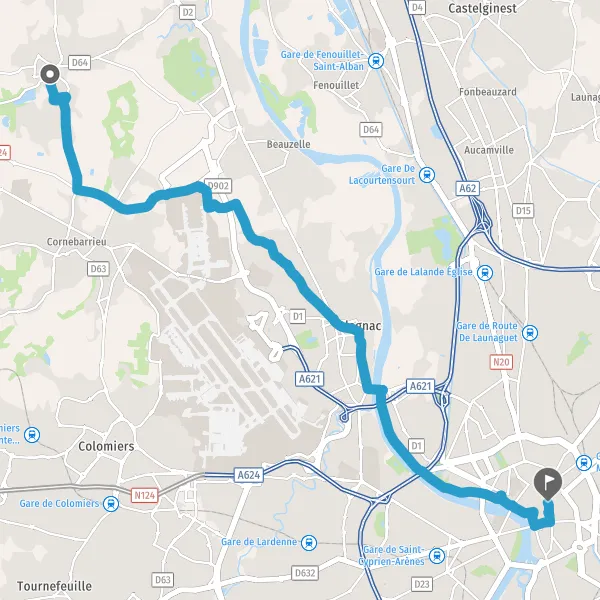 Prendre à droite Chemin d'Aussonne et continuer sur 550 mètres