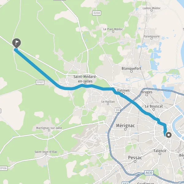 Prendre à gauche la piste cyclable Piste Cyclable Bordeaux - Lacanau et continuer sur 14,9 kilomètres