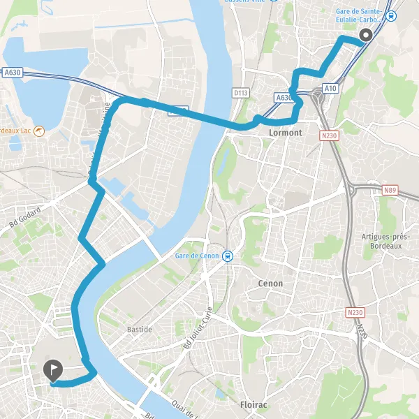 Prendre légèrement à droite la piste cyclable Cours Louis Fargue et continuer sur 1,0 kilomètre