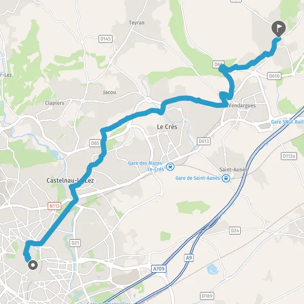 Prendre à droite la piste cyclable Route de Teyran et continuer sur 350 mètres