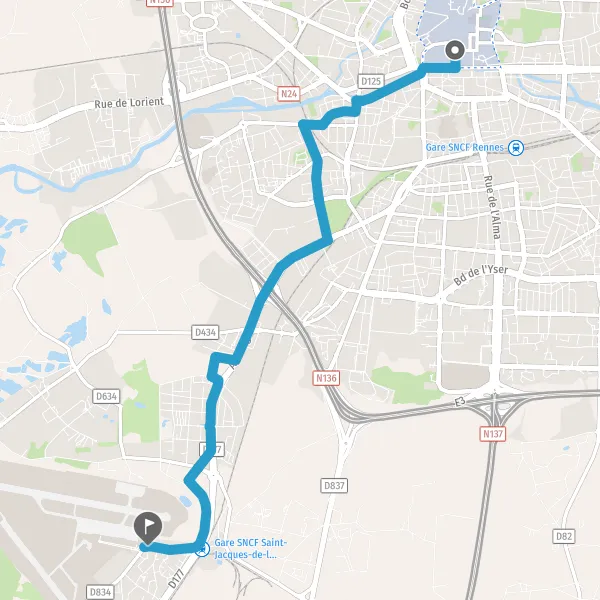 Prendre légèrement à droite la piste cyclable Rue de la Mabilais et continuer sur 350 mètres