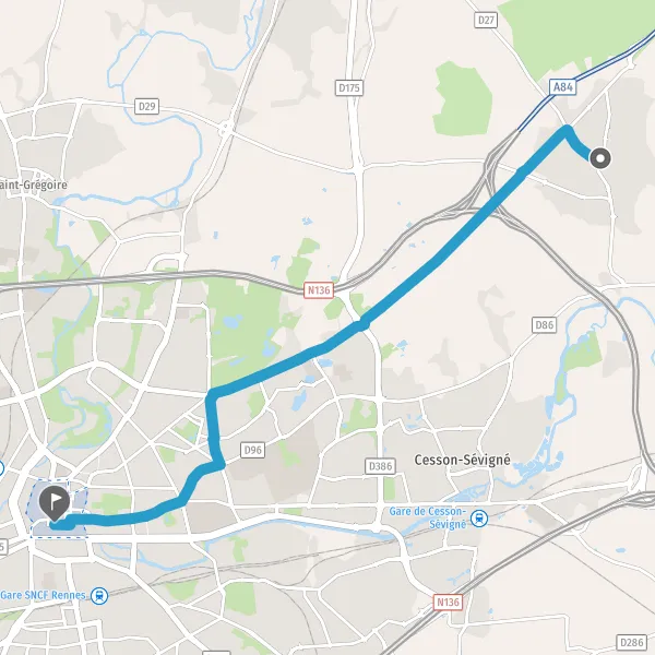 Prendre légèrement à droite la piste cyclable Rue de Fougères et continuer sur 550 mètres