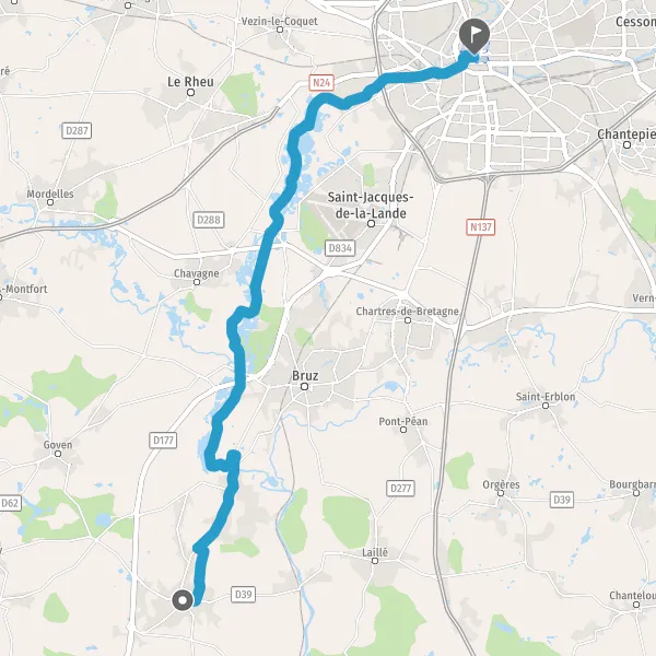 Prendre à droite la piste cyclable la voie et continuer sur 3,4 kilomètres