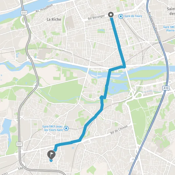 Prendre légèrement à droite la piste cyclable Avenue de Grammont et continuer sur 1,0 kilomètre
