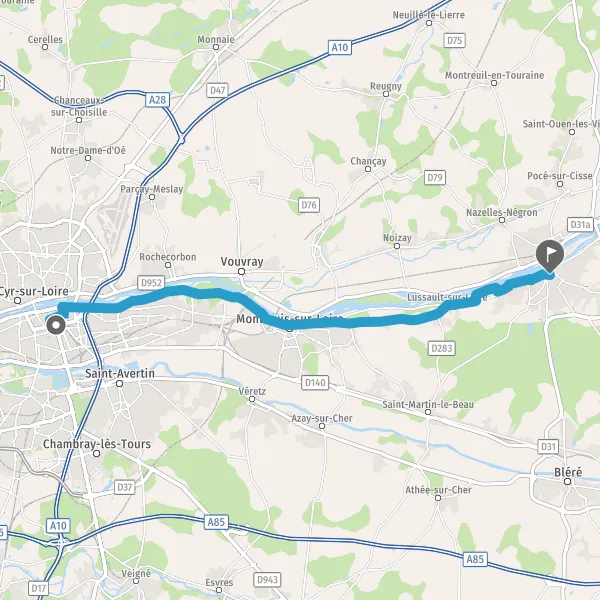 Prendre à gauche la piste cyclable Avenue de Tours et continuer sur 220 mètres