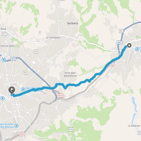 Au rond-point, prendre la 4ème sortie Route de Saint-Étienne et continuer sur 10 mètres