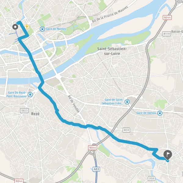 Prendre à gauche la piste cyclable Boulevard des Martyrs Nantais de la Résistance et continuer sur 650 mètres