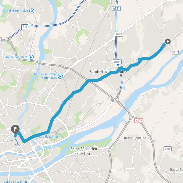 Au rond-point, prendre la 2ème sortie la piste cyclable Rue de Nantes et continuer sur 1,0 kilomètre