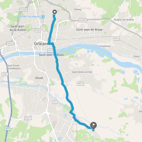 Prendre à droite la piste cyclable Rue d'Olivet et continuer sur 160 mètres