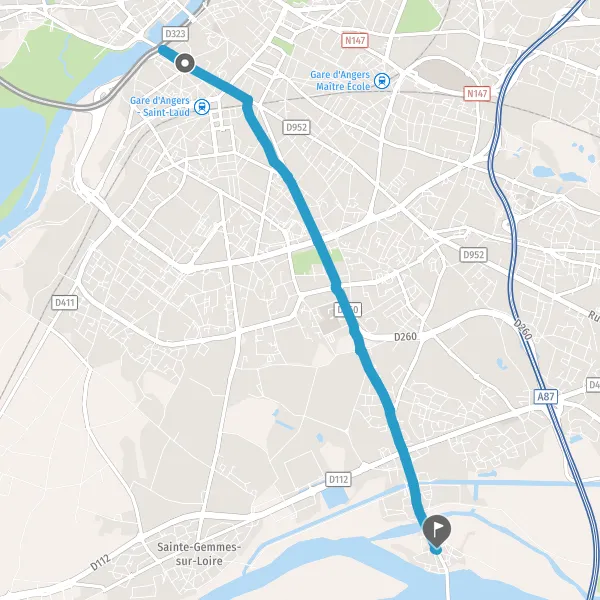 Au rond-point, prendre la 2ème sortie la piste cyclable Rue de Brissac et continuer sur 600 mètres