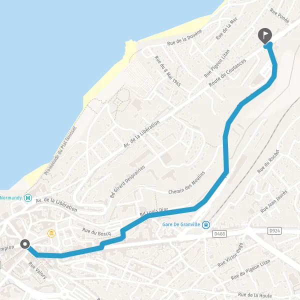 | Distance à vélo | 1,5 km à 1,7 km |