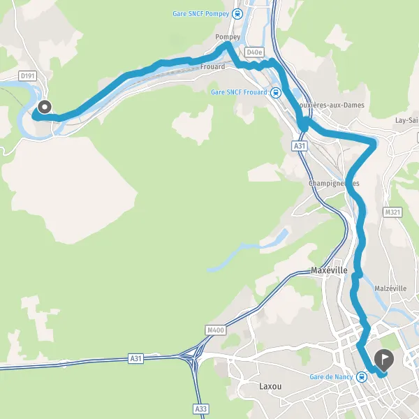 Au rond-point, prendre la 1ère sortie Route de Pompey et continuer sur 2,5 kilomètres