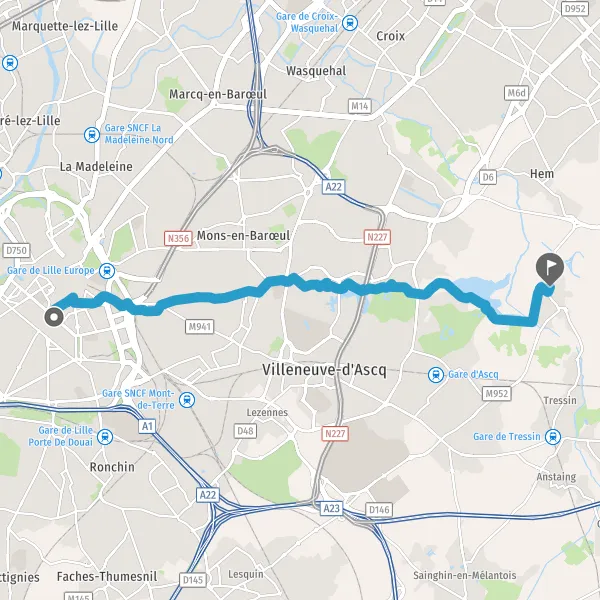 Prendre à gauche la piste cyclable la voie et continuer sur 950 mètres