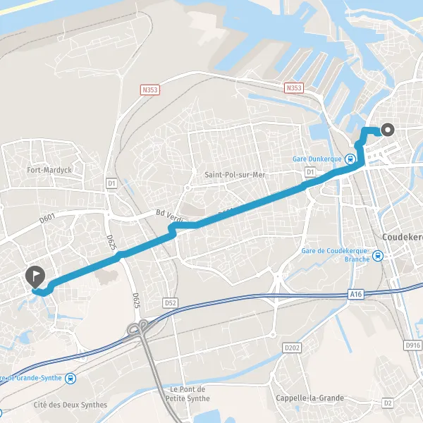 Prendre légèrement à droite la piste cyclable Avenue de Petite-Synthe et continuer sur 450 mètres