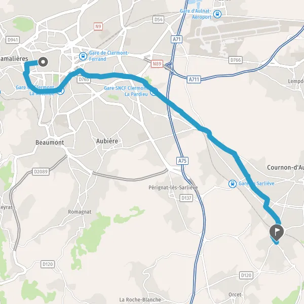 Prendre légèrement à gauche la piste cyclable Chemin de Clermont-Ferrand à Cournon par le Traps et continuer sur 45 mètres