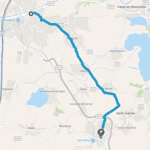 Au rond-point, prendre la 2ème sortie Route d'Alénya et continuer sur 20 mètres