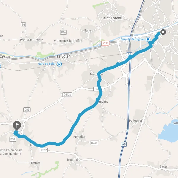 Au rond-point, prendre la 5ème sortie la piste cyclable Rond-Point de Llupia et continuer sur 350 mètres