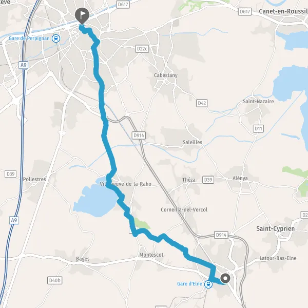 Prendre à gauche la piste cyclable la voie et continuer sur 220 mètres