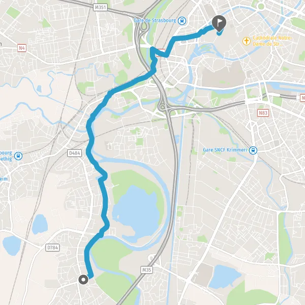 Prendre légèrement à droite la piste cyclable Quai du Murhof et continuer sur 300 mètres