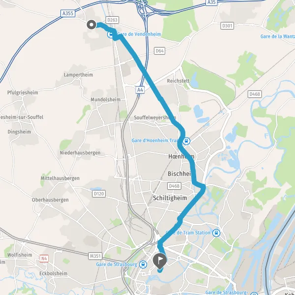 Prendre légèrement à droite la voie partagée Route de Strasbourg et continuer sur 280 mètres