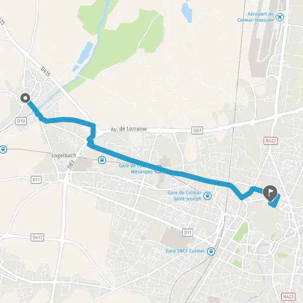 Mappy vous permet de trouver le meilleur itinéraire vélo pour aller de Ingersheim à Colmar et vous indique si votre trajet passe par des pistes cyclables ou des voies vertes. Vous pouvez également comparer votre trajet Ingersheim Colmar à vélo, avec les autres modes de transports et calculer les économies de temps ou de distance réalisées. N'hésitez pas à installer l'application pour bénéficier du guidage GPS.